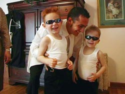 Props: tuxedoes, sunglasses, Porsche limousine, champagne, instamatic cameras, whiskey, combs
